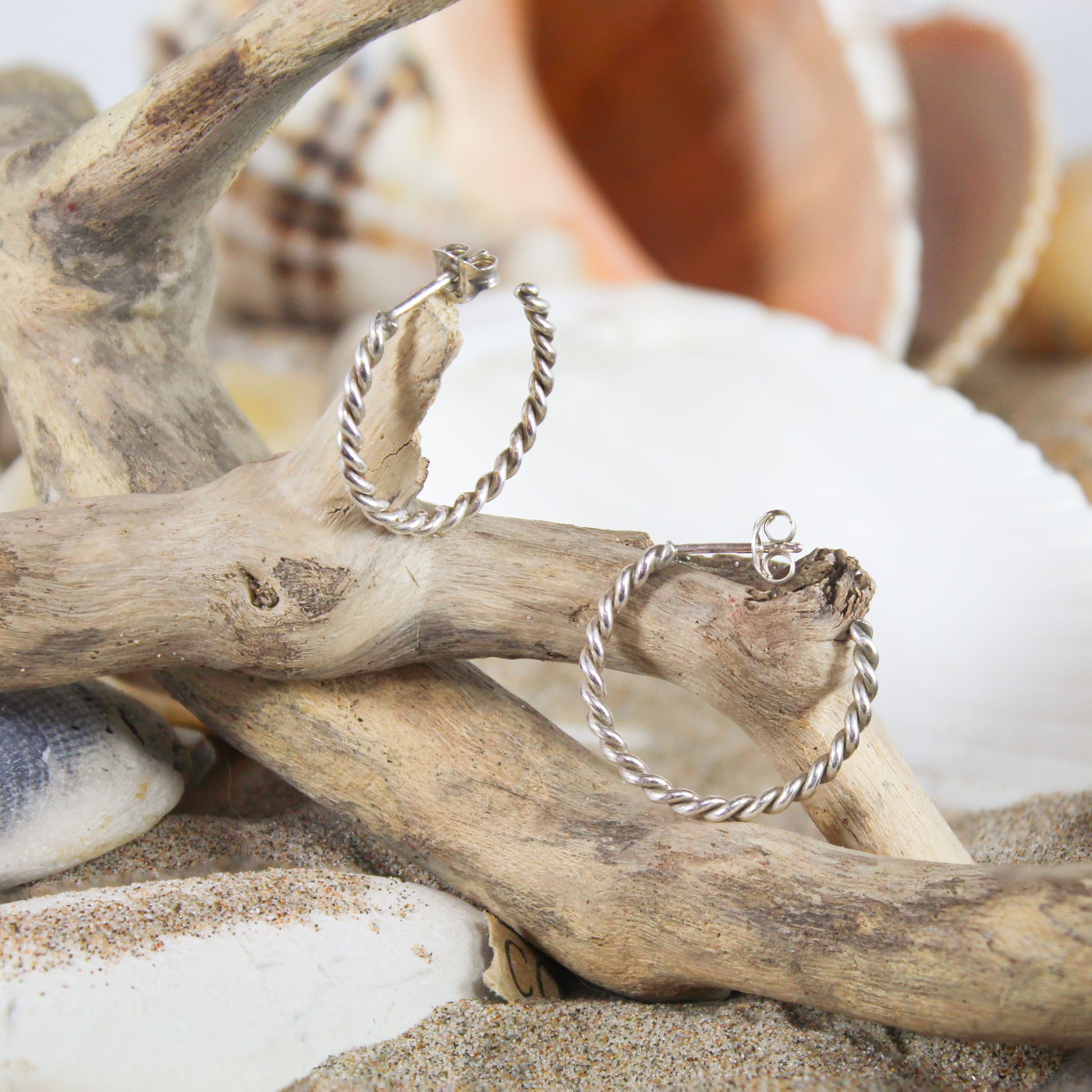 Crafted from twisted sterling silver, these elegant open hoop earrings are inspired by the halyard ropes used to hoist sails and flags—symbols of strength and connection.